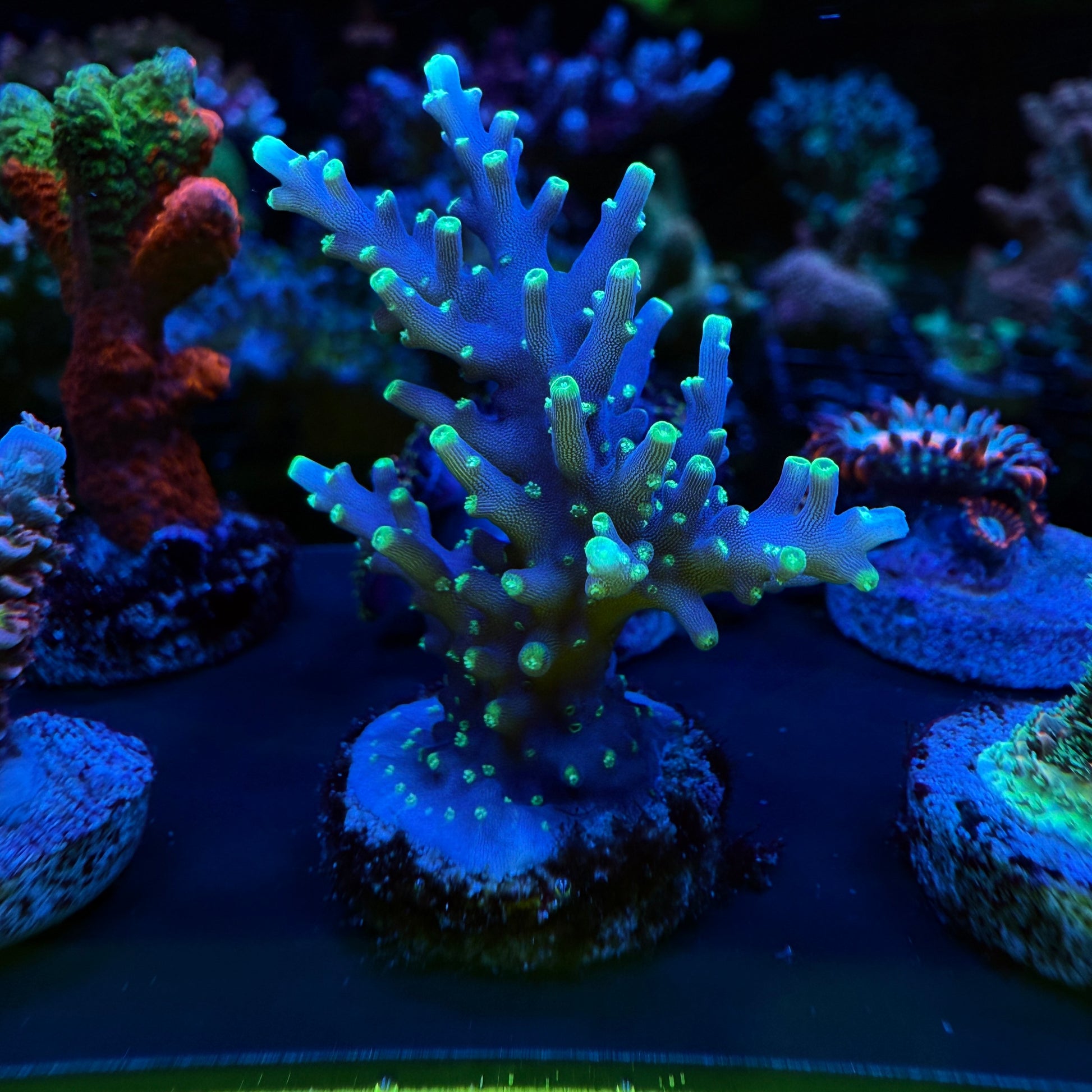 This is a stunning addition to any reef tank. This hardy variety boasts vibrant colors and impressive growth, making it a reliable choice for experienced reef keepers. With its unique and eye-catching appearance, this coral is sure to be a standout in any aquarium.