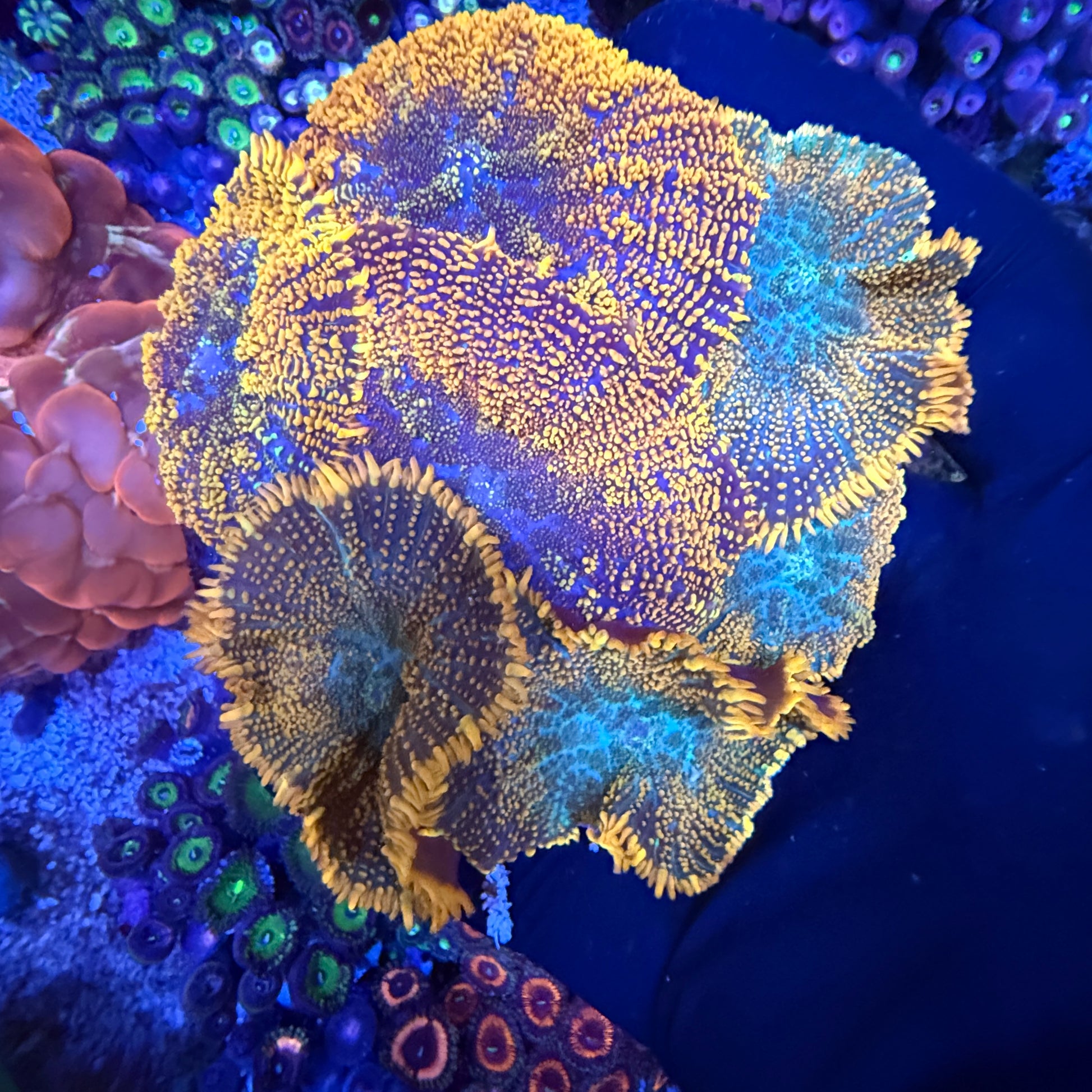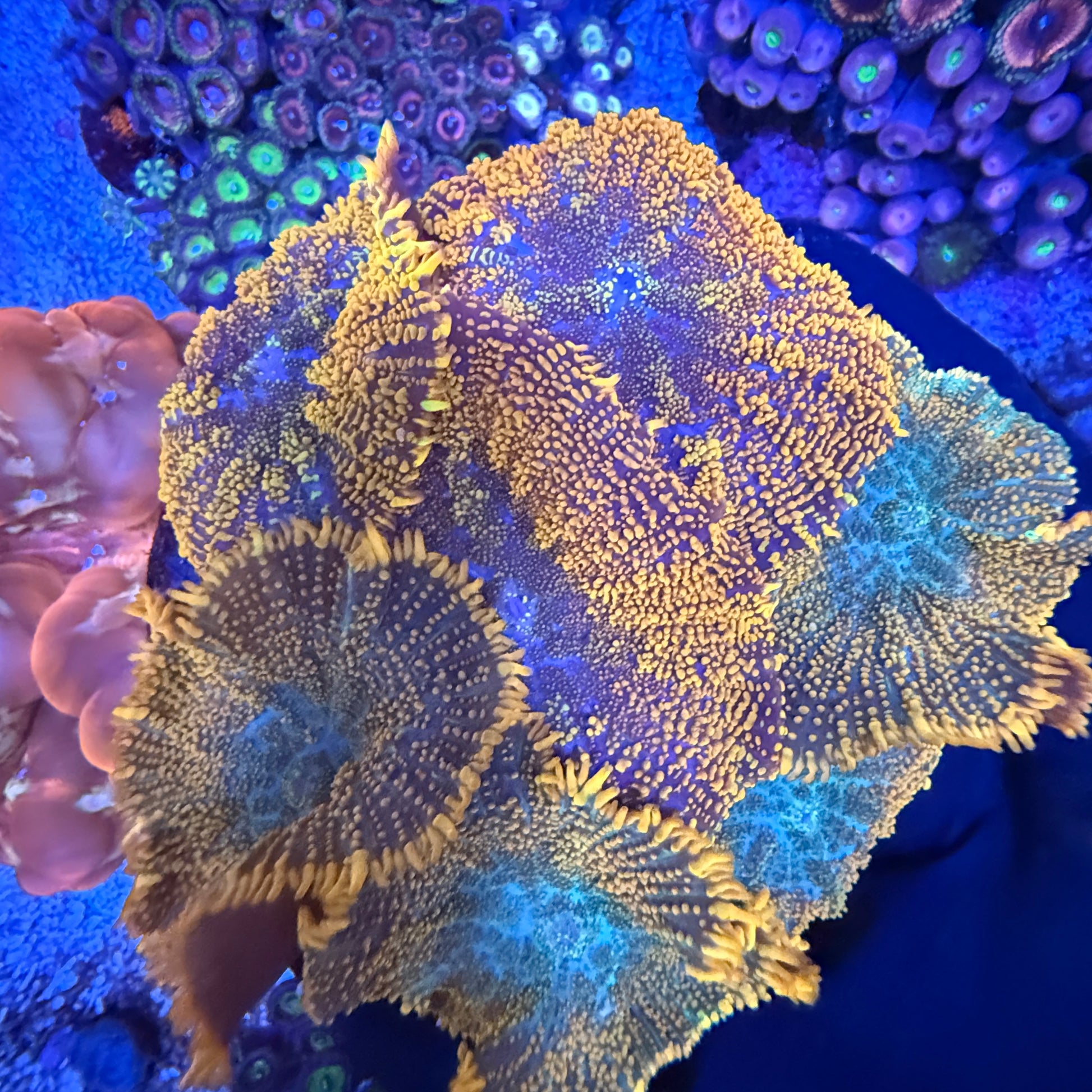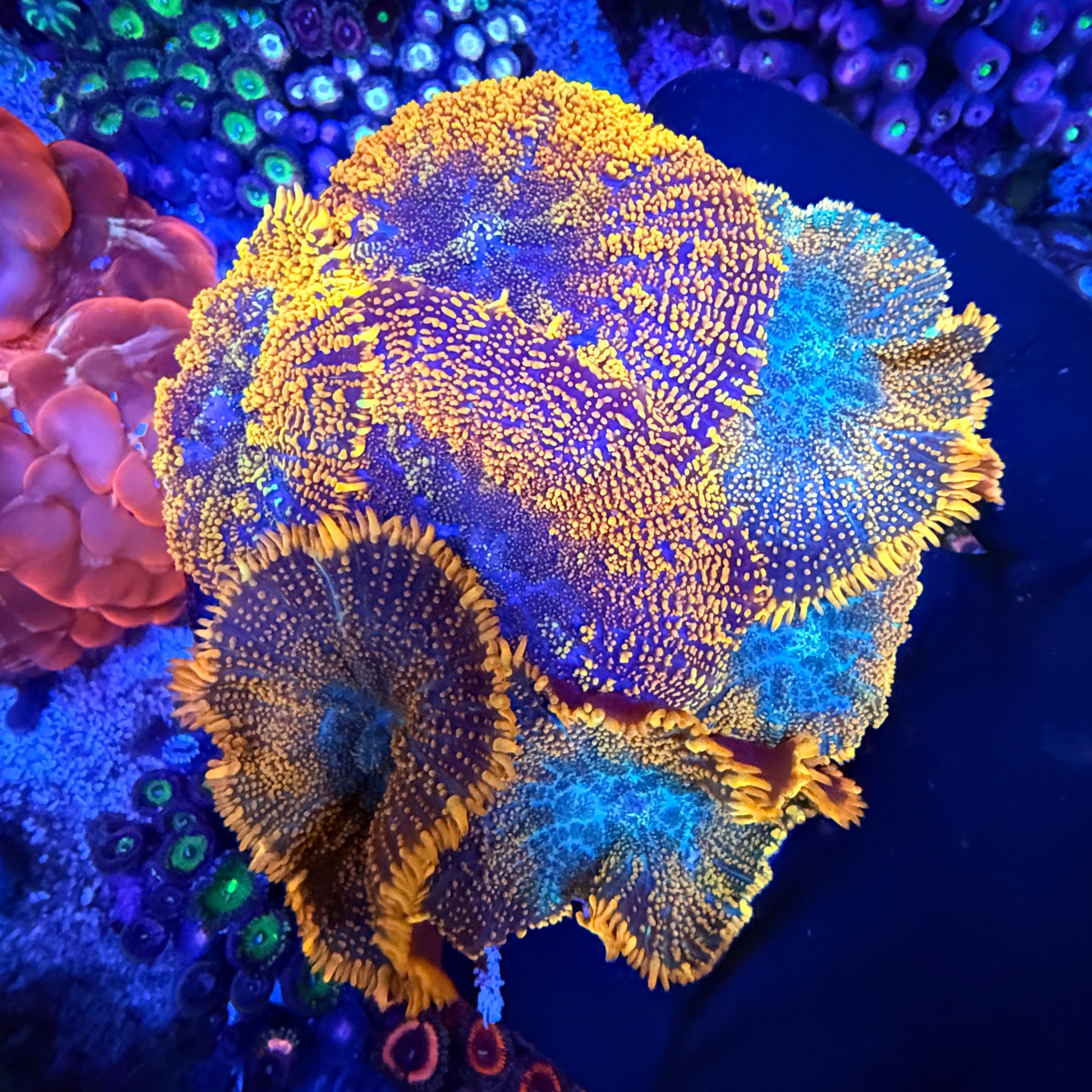 Mushroom corals are hardy, soft corals loved for their smooth, fleshy caps and wide range of vibrant colors, including reds, greens, blues, and multicolor patterns. Easy to care for and adaptable, they thrive in low to moderate light and gentle flow, making them perfect for beginners and seasoned reef keepers alike. Mushrooms add rich color and natural movement to reef tanks and can slowly spread, creating a lush, living carpet over time.