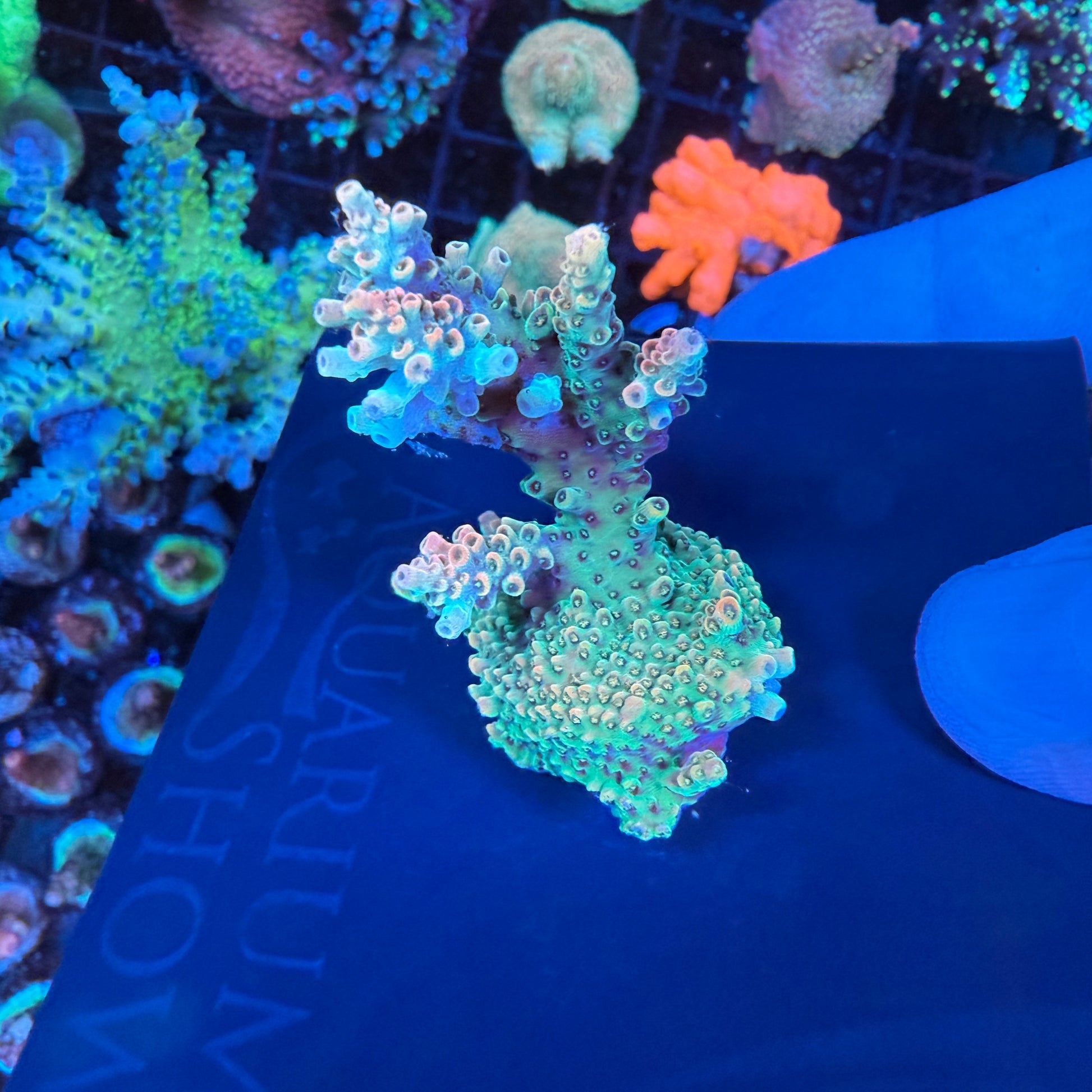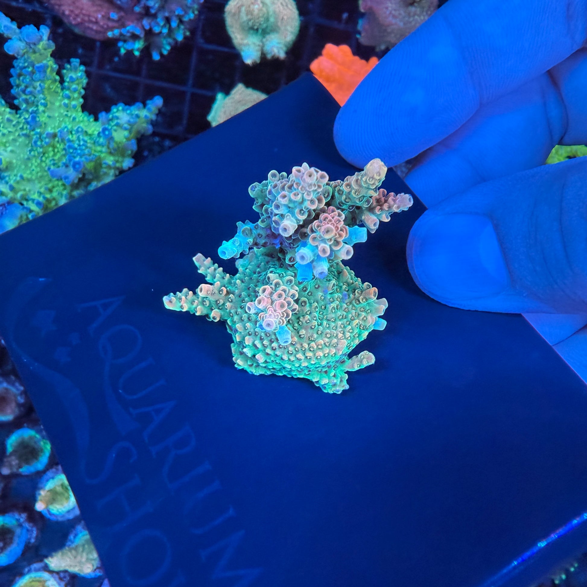 This WYSIWYG Bill Murray Acro is a stunning addition to any reef tank. This hardy variety boasts vibrant colors and impressive growth, making it a reliable choice for experienced reef keepers. With its unique and eye-catching appearance, this coral is sure to be a standout in any aquarium.