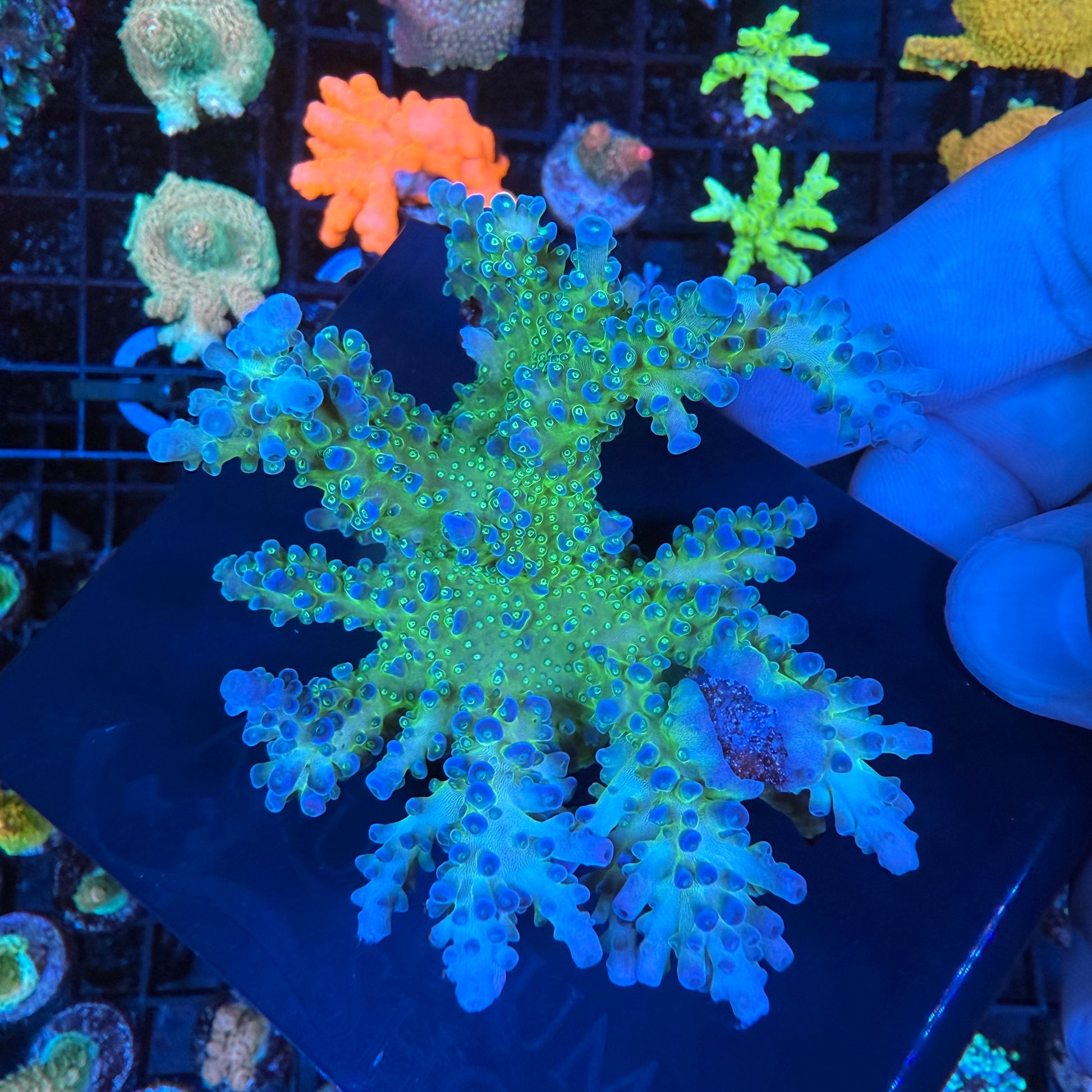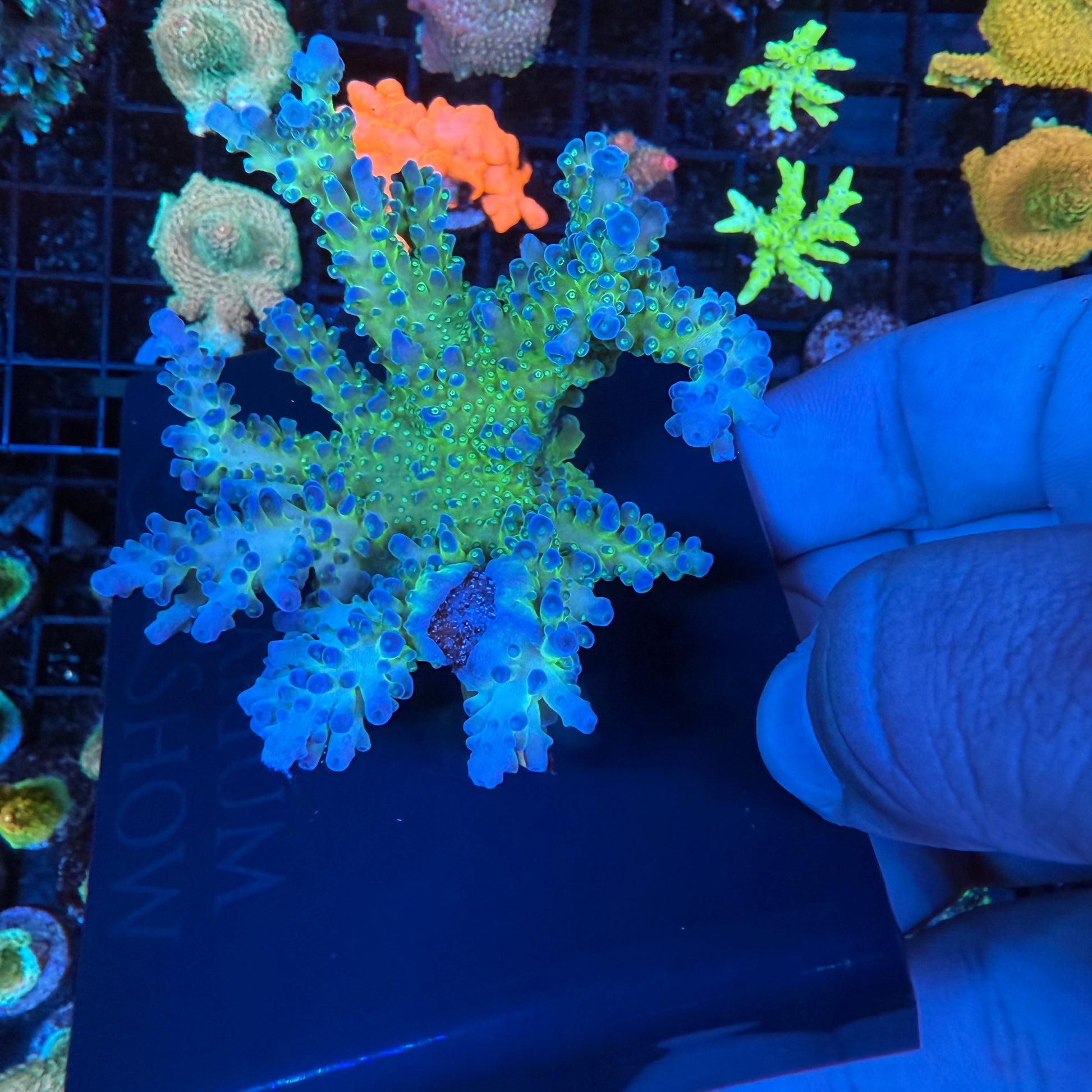 This WYSIWYG Mr Miyagi Tort is a stunning addition to any reef tank. This hardy variety boasts vibrant colors and impressive growth, making it a reliable choice for experienced reef keepers. With its unique and eye-catching appearance, this coral is sure to be a standout in any aquarium.