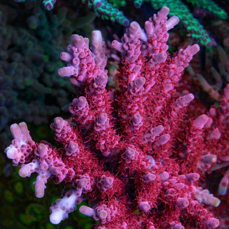 This Acro is a stunning addition to any reef tank. This hardy variety boasts vibrant colors and impressive growth, making it a reliable choice for experienced reef keepers. With its unique and eye-catching appearance, this coral is sure to be a standout in any aquarium.