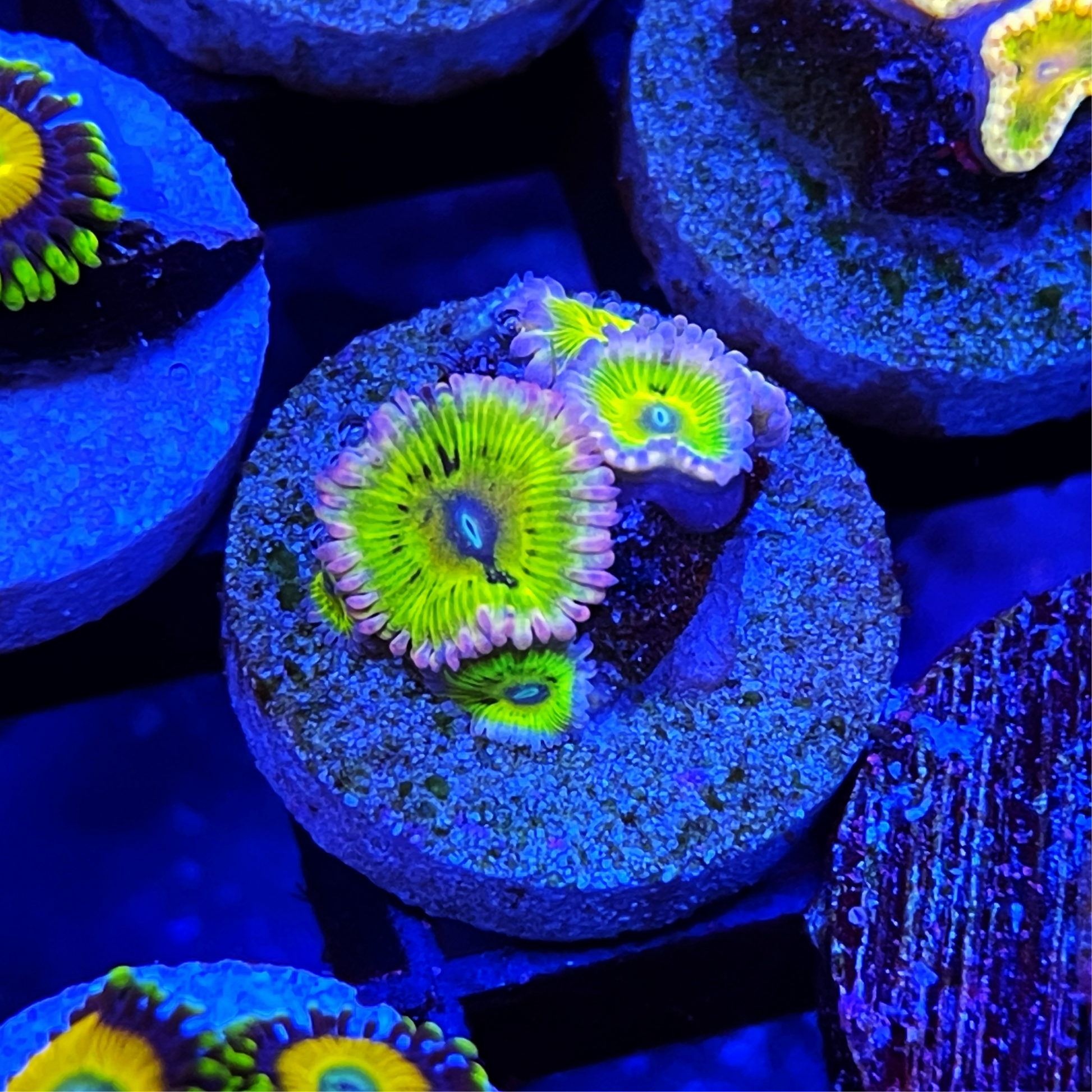 Zoanthids, commonly referred to as zoas, are a vibrant and popular group of soft corals in the order Zoantharia, prized by marine aquarists for their dazzling colors and ease of care. These corals form colonies of individual polyps, each resembling a tiny flower with a central mouth surrounded by tentacles. Zoanthids are available in a stunning array of colors and patterns, ranging from neon greens, blues, and purples to reds, oranges, and yellows, often with striking contrasts and intricate designs.