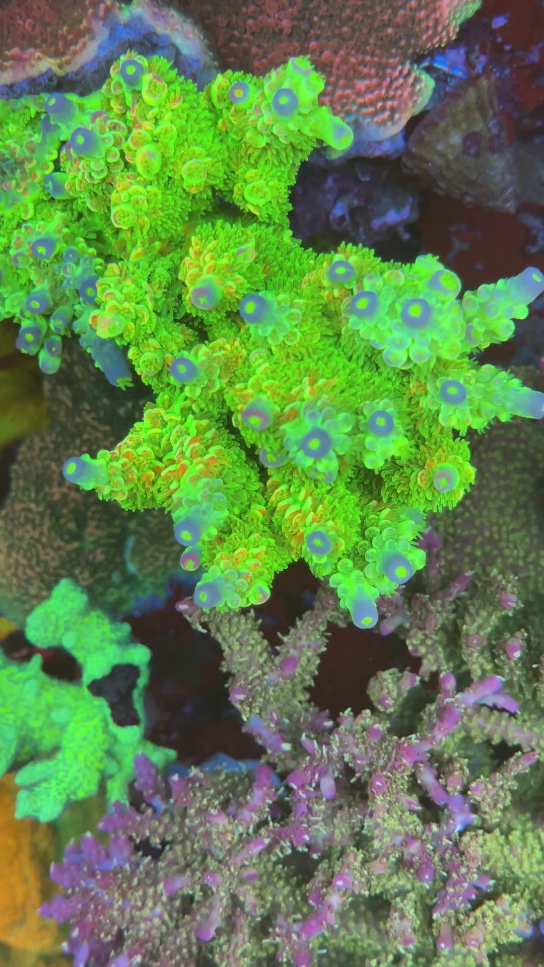Acropora coral, belonging to the genus Acropora, is one of the most recognizable and highly prized types of small polyp stony coral (SPS) among marine aquarists. Known for its intricate and diverse branching structures, Acropora coral can form stunning, tree-like colonies with a variety of growth patterns, including tabling, staghorn, and bushy shapes. These corals come in a dazzling array of colors, ranging from vibrant blues, greens, and purples to more subtle pinks, browns, and yellows.