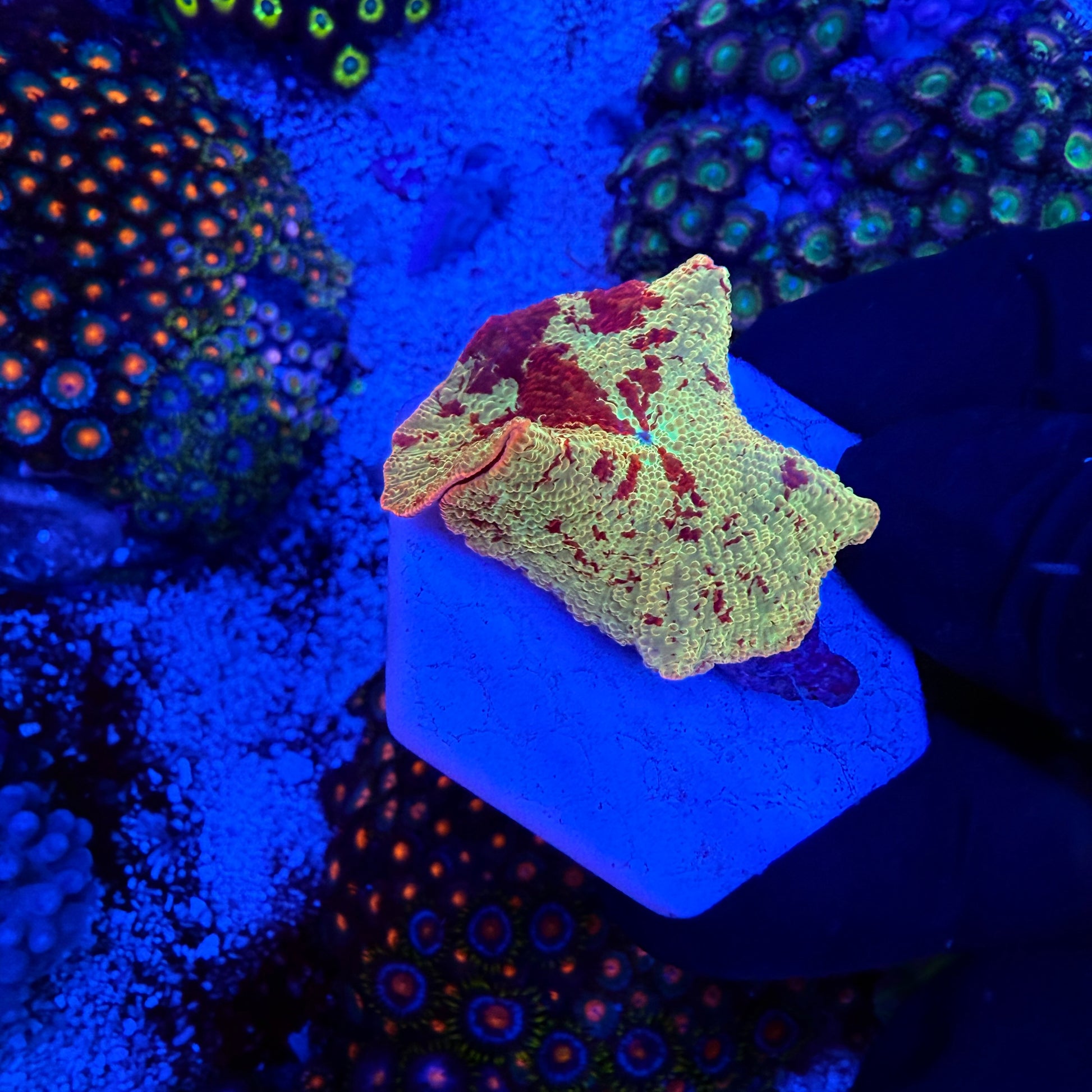 This beginner-friendly mushroom coral is perfect for those new to the hobby. With its easy care requirements and beautiful appearance, it is a great addition to any saltwater aquarium. Its unique shape and vibrant colors make it a stunning focal point for any tank. Boost the visual appeal of your aquarium with this stunning mushroom coral.