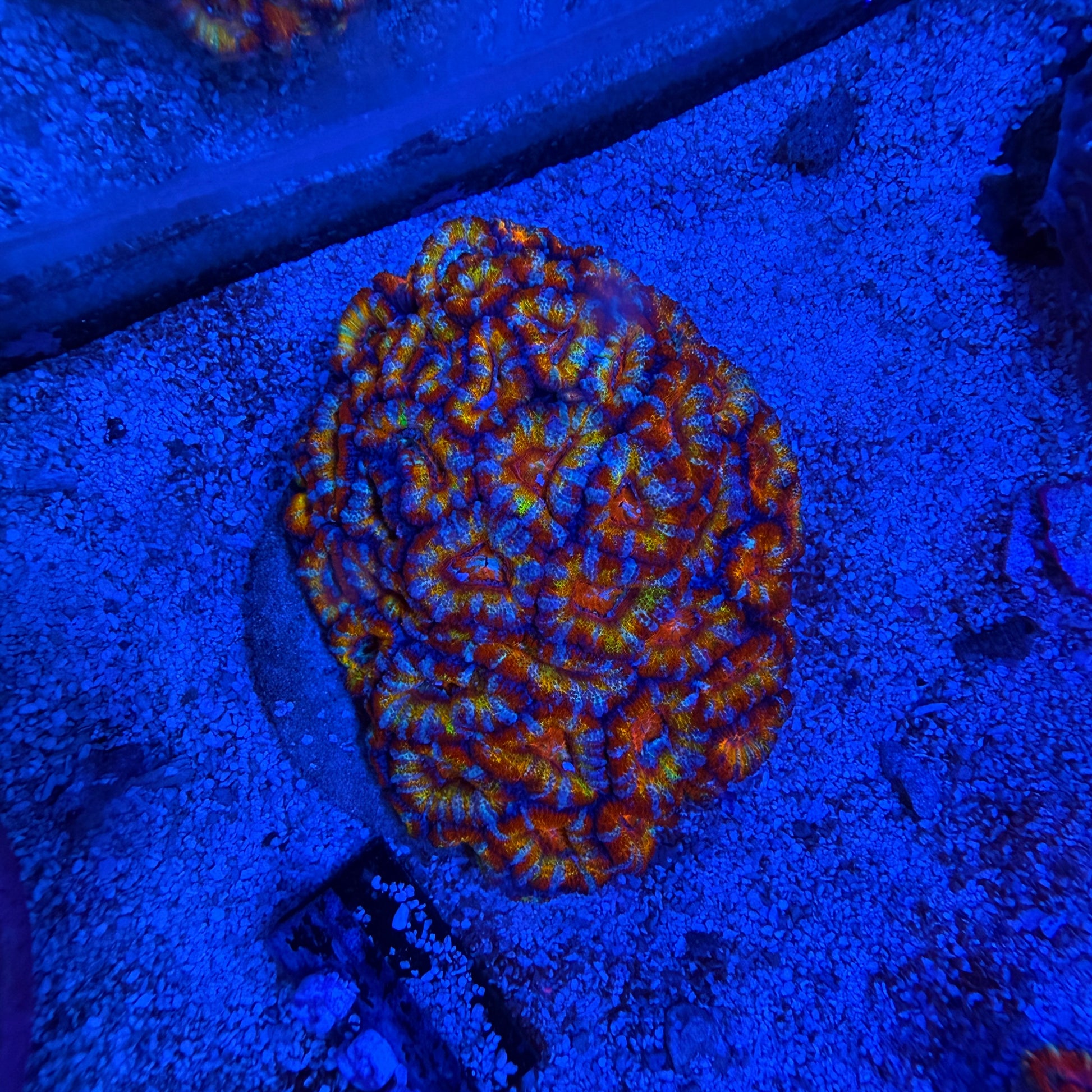 Discover the stunning beauty of nature with the WYSIWYG Rainbow Acan coral. This rare and unique coral variety features intricate and vibrant acan patterns and textures, adding a touch of elegance to any aquarium. With proven ability to improve water quality and provide a natural habitat for marine life, this coral is a must-have for any aquarium enthusiast.