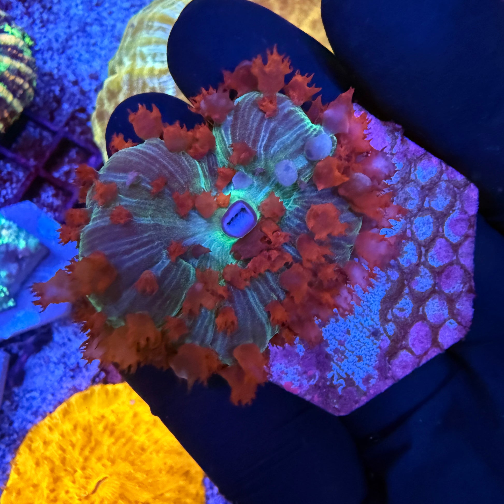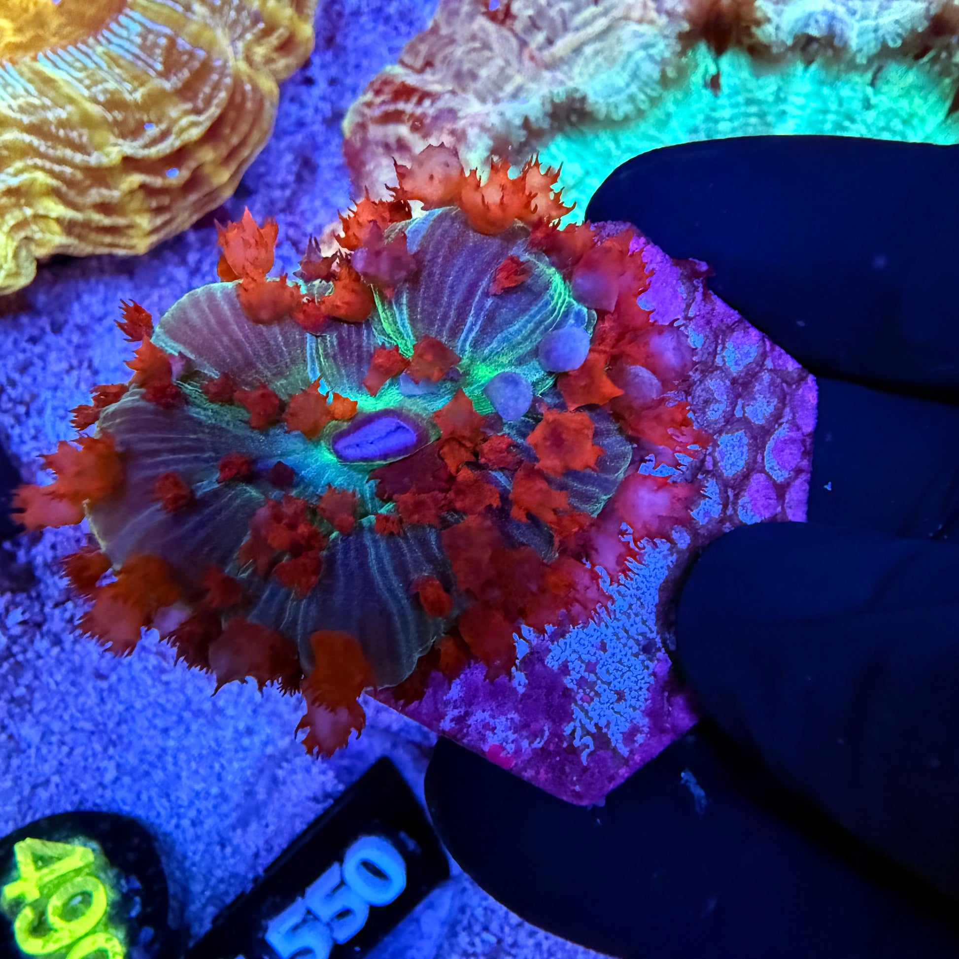 St. Thomas mushrooms are highly sought-after for their intense coloration and unique, wavy texture, often displaying bold blues, purples, greens, and multicolor patterns with a glossy sheen. Known for their larger size and striking presence, these mushrooms thrive in low to moderate light and gentle flow. Hardy yet exotic in appearance, St. Thomas mushrooms make an exceptional statement piece for collectors looking to add rare Caribbean flair to their reef tank.