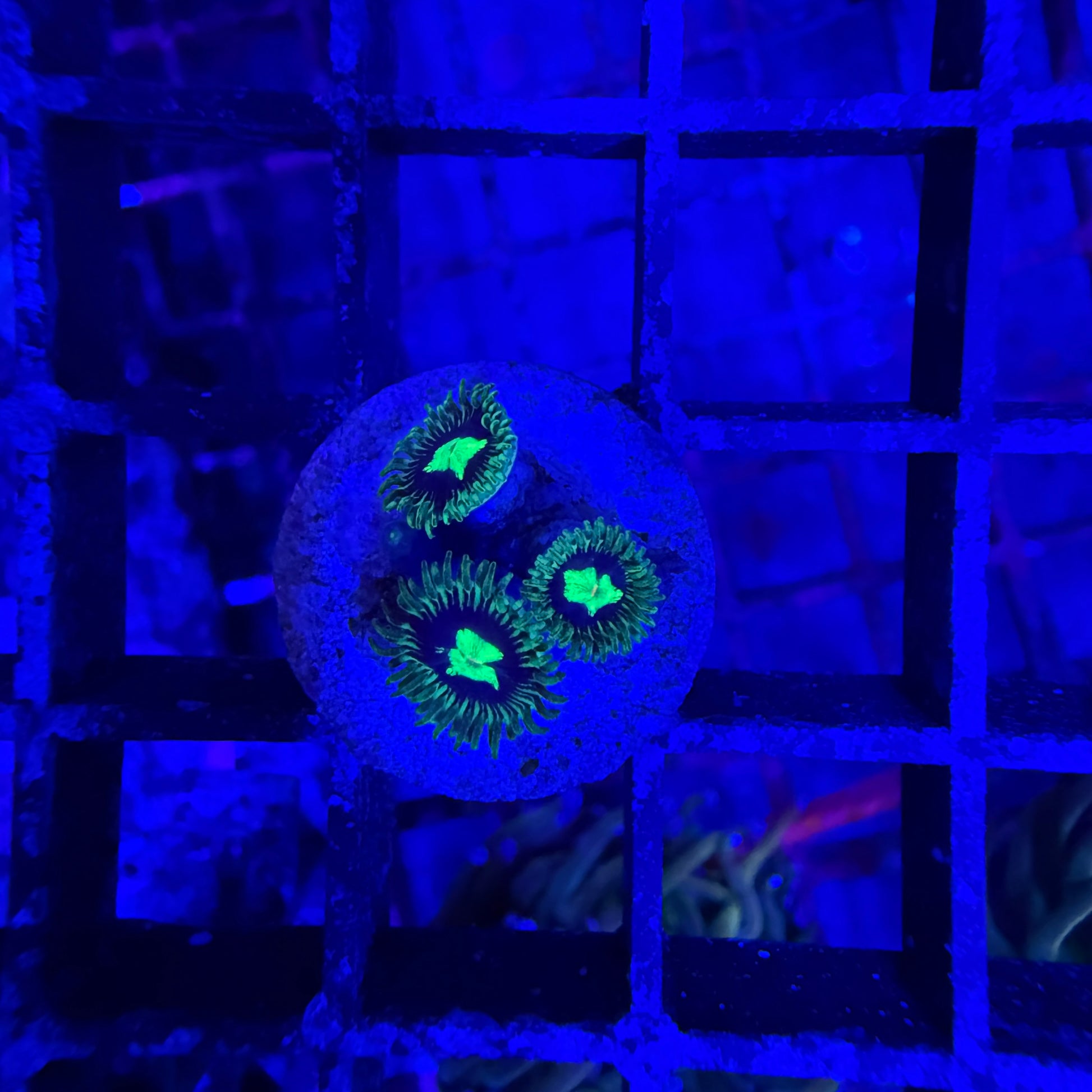 Zoas are small, colorful polyps that form vibrant mats across rockwork, coming in nearly endless color combinations—neons, pastels, speckles, and glowing rings. They’re hardy, fast-growing, and perfect for adding instant visual impact to a reef. Thriving in low to moderate light and gentle to moderate flow, zoas are easy to care for and ideal for both beginners and collectors chasing rare, high-end morphs.