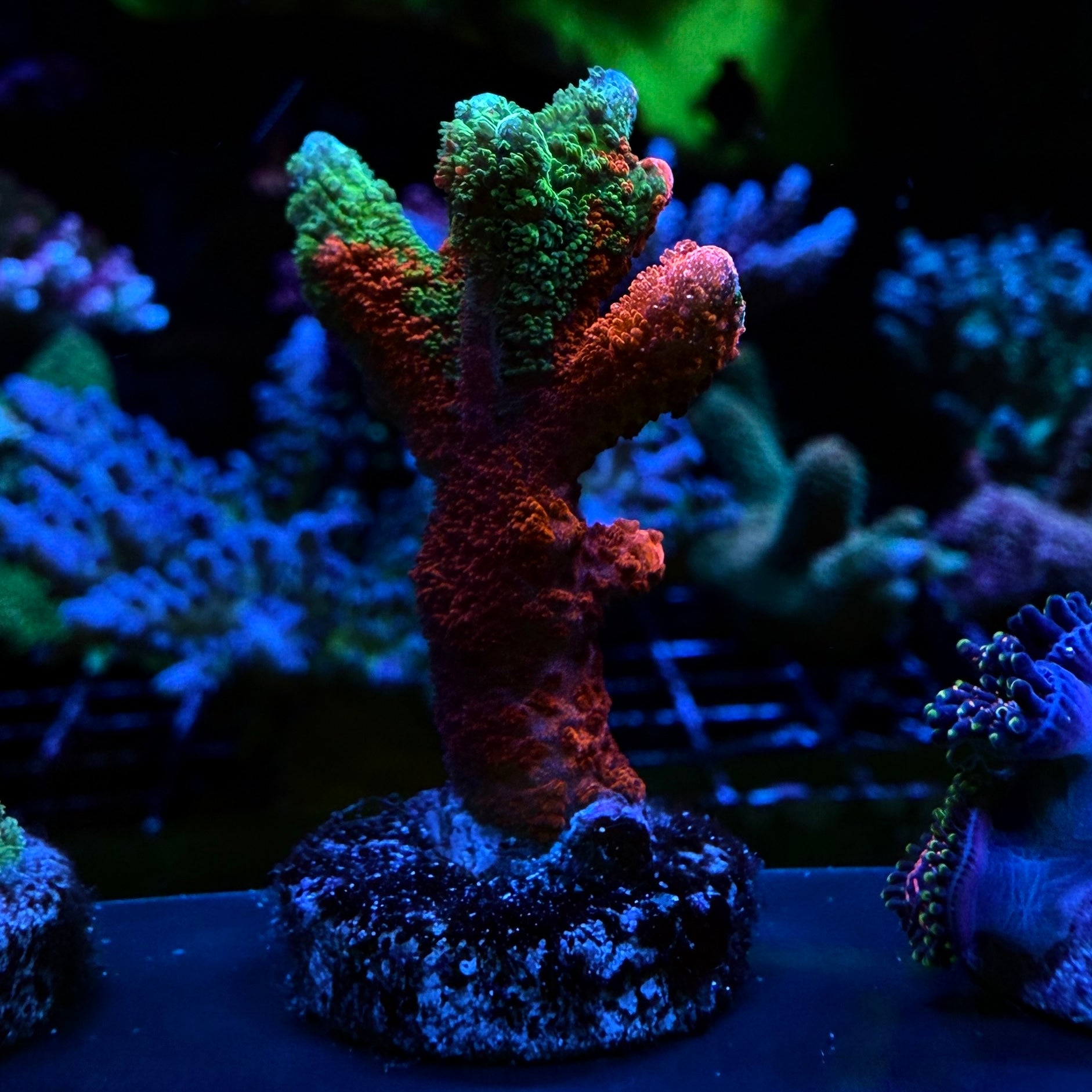 This is a stunning addition to any reef tank. This hardy variety boasts vibrant colors and impressive growth, making it a reliable choice for experienced reef keepers. With its unique and eye-catching appearance, this coral is sure to be a standout in any aquarium.